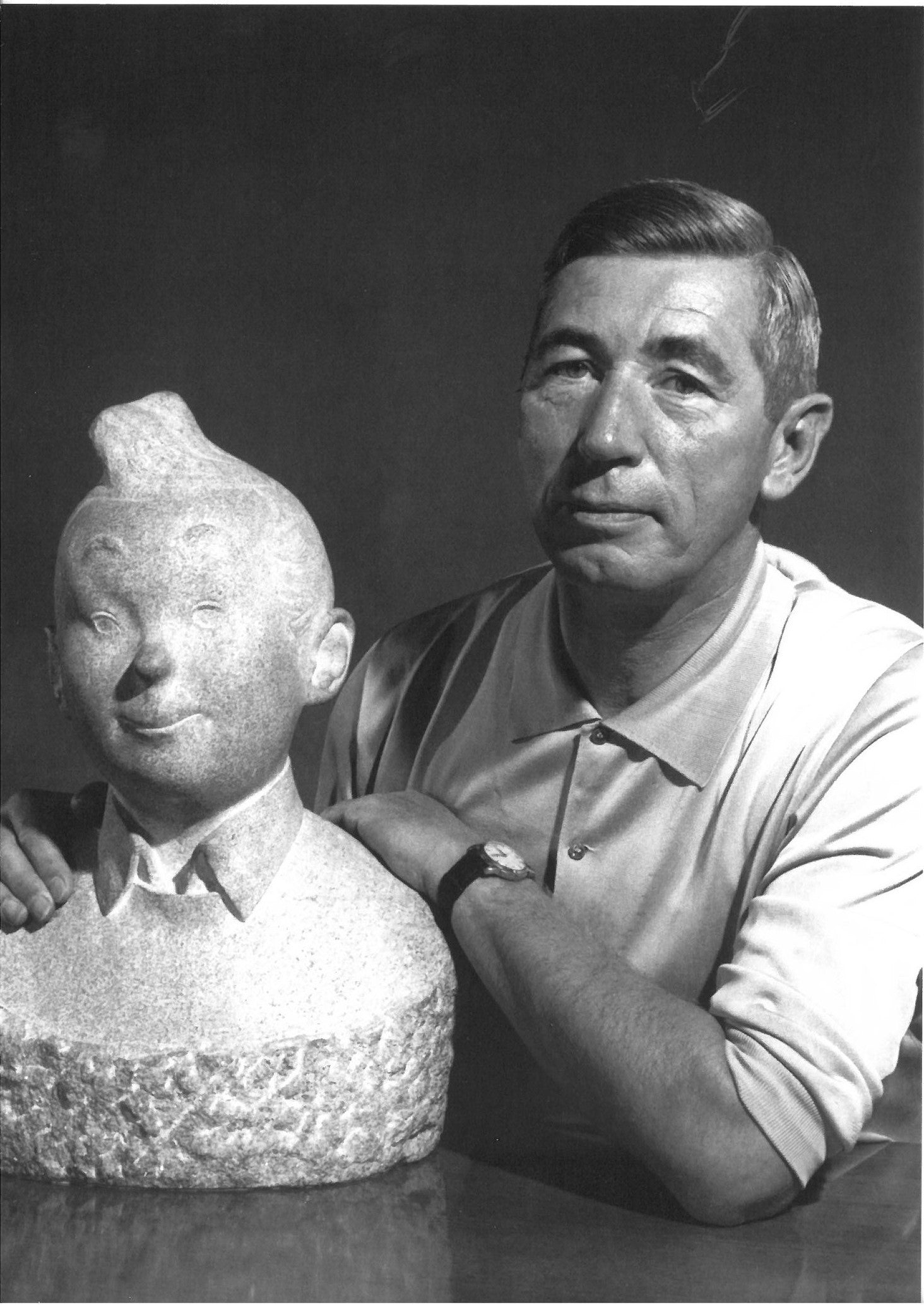 This postcard represents the portrait of Hergé by the photographer Robert Kayaert: Bust of Tintin, 1960.